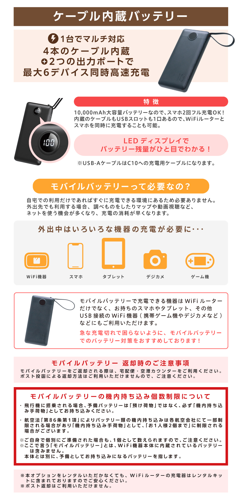 ※こちらのオプションのお申込みがなくてもWiFiルーターを充電できるキットはついておりますのでご安心ください。